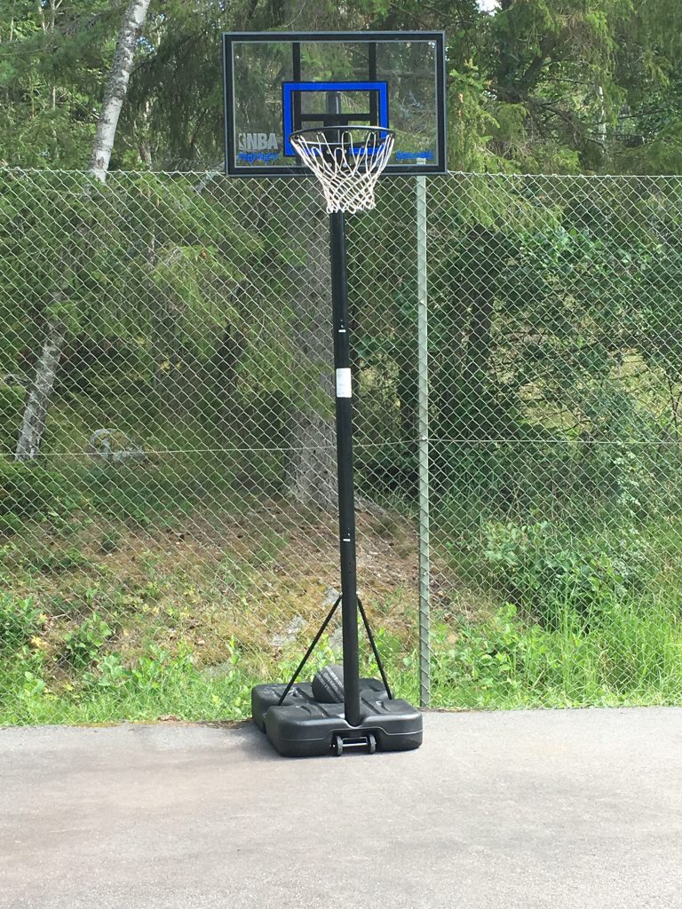 Föreningen har köpt in ett basketmål som den som vill får använda när tennisbanan är ledig. Ta med en egen basketboll i så fall. Obs! Tennisspelande har företräde före basketspelande.